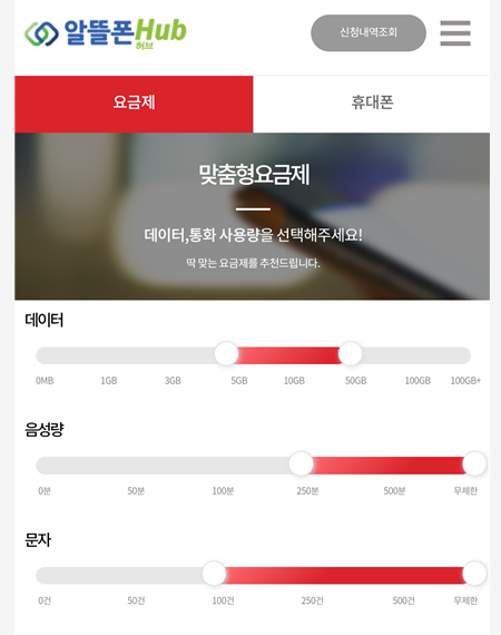 상단 메뉴에서 '맞춤요금제'를 클릭합니다.