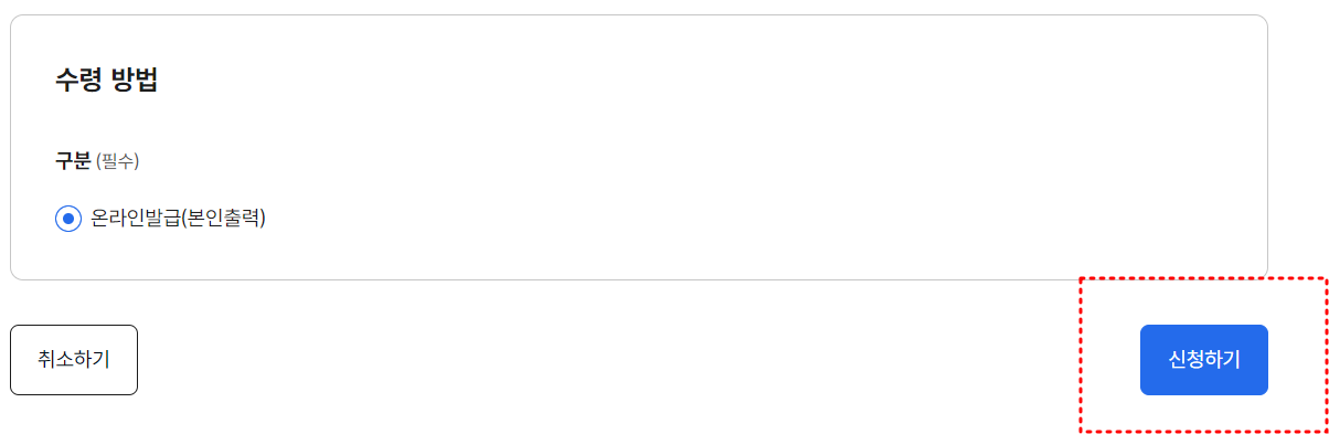 3. 신청: 발급용도와 제출처를 기재하고 신청합니다.