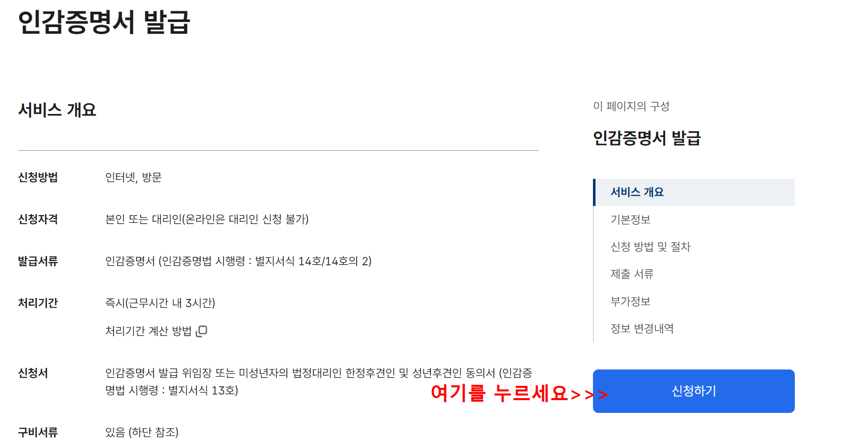 3. 인감증명서 발급 화면에서 '신청하기'를 누릅니다.