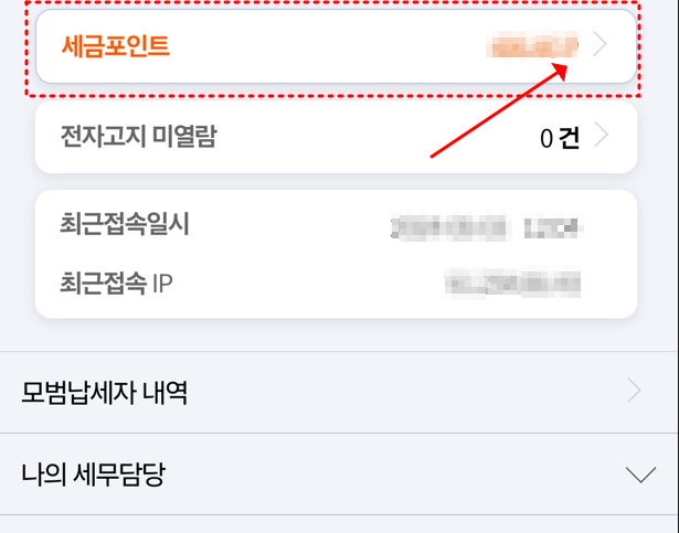 2. 화면 맨 위 세금포인트 누르기