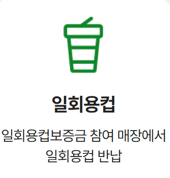 일회용컵 반환: 일회용컵 보증금제 매장에서 일회용컵을 반납하면 포인트를 받을 수 있습니다.