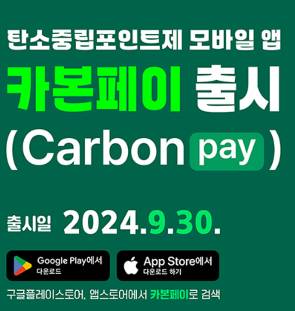 새로 출시된 탄소중립포인트 모바일 앱의 이름은 "카본페이"입니다. 구글플레이스토어, 앱스토어에서 "카본페이"를 검색해서 다운로드 받을 수 있습니다.