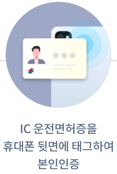 2. IC 운전면허증을 핸드폰 뒷면에 태그하여 본인 인증을 합니다.