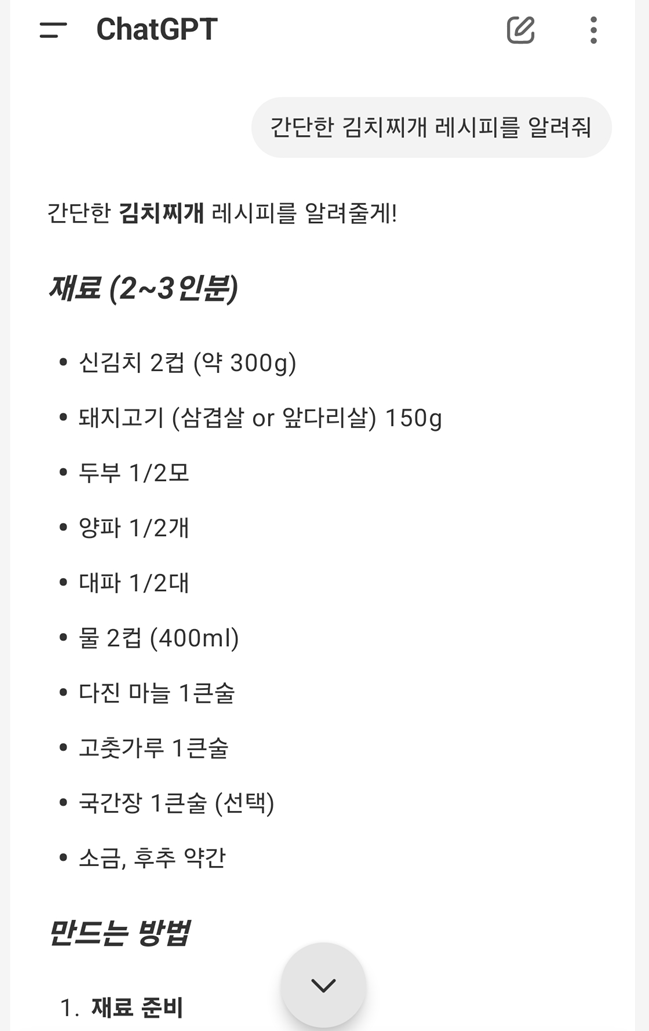 "간단한 김치 찌개 레시피를 알려줘"