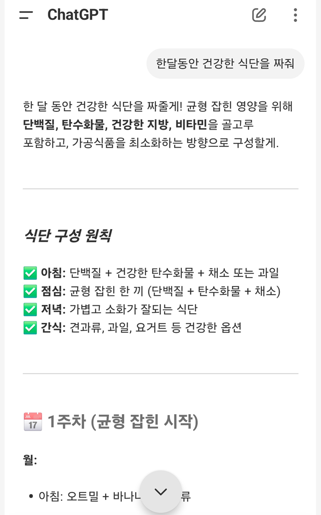 "한 달 동안 건강한 식단 짜줘"