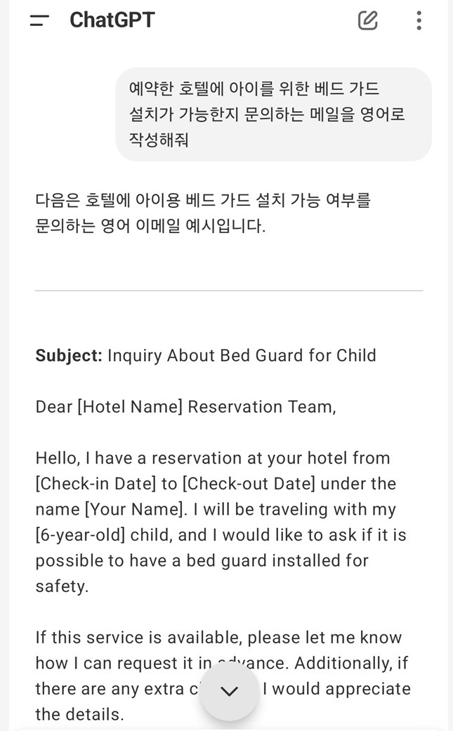 ✔ 여행 계획을 짜달라고 요청할 수 있어요.