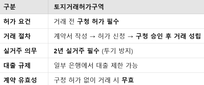 ✔ 투기 수요 억제: 허가제와 실거주 의무로 인해 갭투자 등 투기적 거래가 제한됩니다.