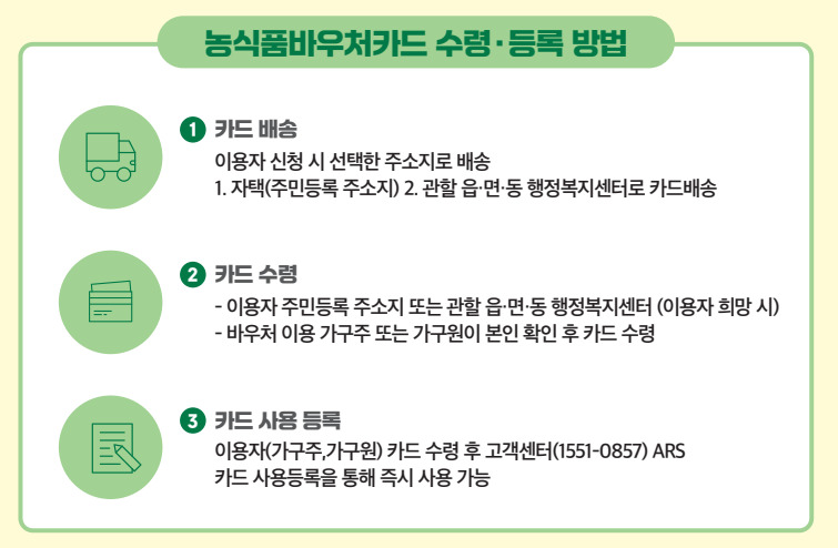 농식품 바우처는 카드로 받게 되며 이 카드를 이용해 식품들을 구매할 수 있습니다.