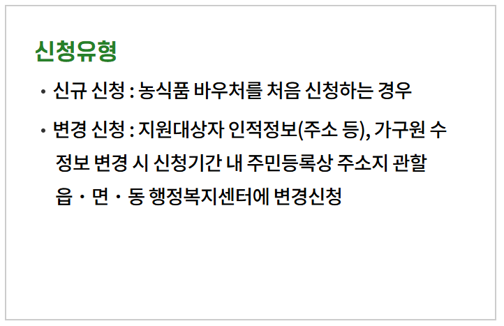 농식품 바우처. 신청대상에 해당되신다면 놓치지 말고 꼭 신청하시기 바랍니다.