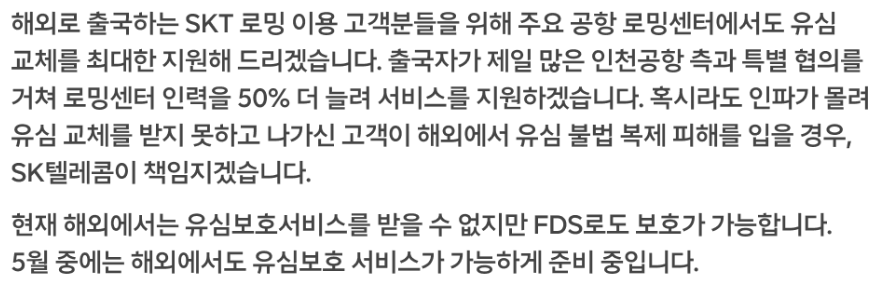 안전한 모바일 생활을 위해, 유심 보호 서비스도 함께 확인해보세요!