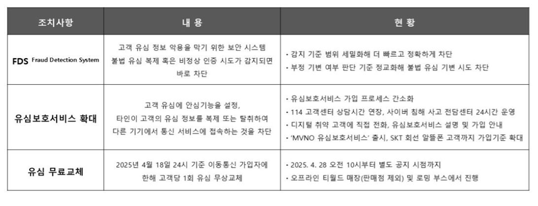 SK 텔레콤 고객정보 보호조치 내역 (2025년 4월 24일 기준)