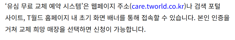 SKT 유심칩 무료 교체 예약 시스템 예약 방법