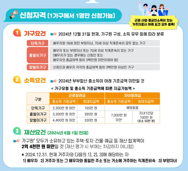 즉, 근로소득이든 사업소득이든 일정 요건을 충족하면 누구든 신청이 가능합니다.